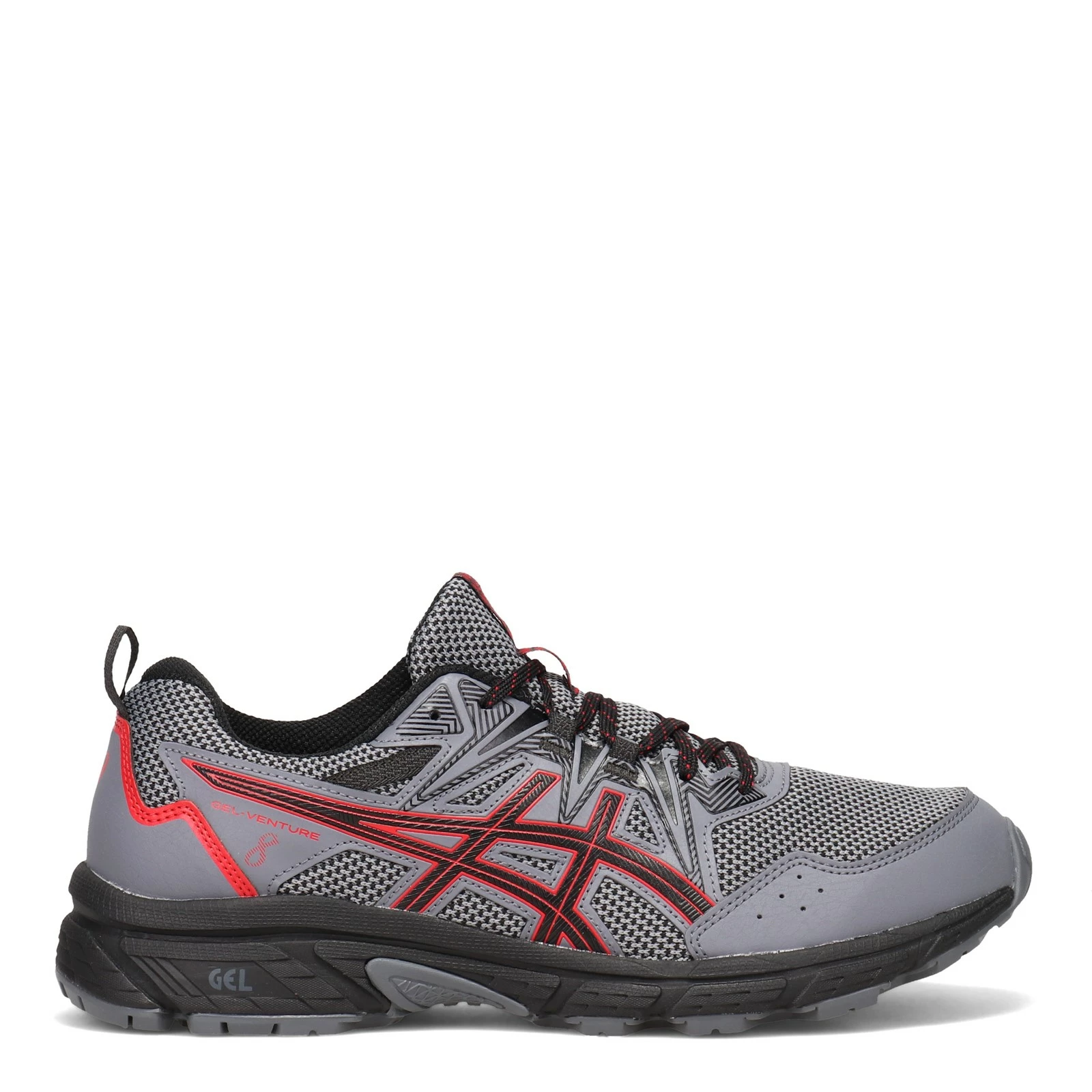 Men’s ASICS, GEL-Venture 8 Trail Running Shoe. The GEL-Venture 8 has been updated with a more accommodating fit, while reducing the amount of overlays around the forefoot. The outsole is more durable with a traction pattern that’s been improved with re-engineered lugs.