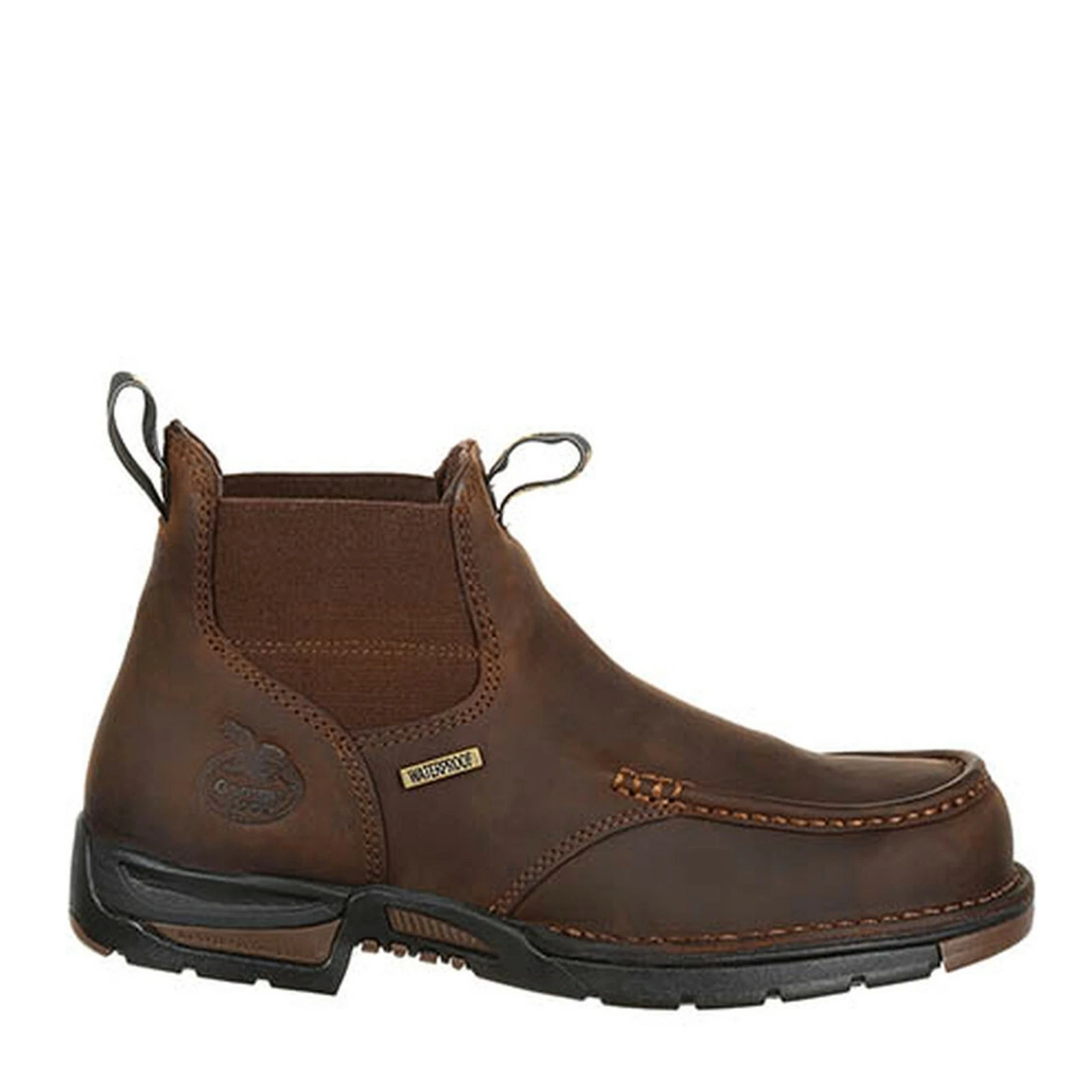 Men’s Georgia Boot, Athens Chelsea Waterproof Boot. Georgia has been making water-ready footwear from the highest quality materials for a long time, and the Athens 5″ Men’s Chelsea is a prime example. Built to keep working feet protected and comfortable in almost any working condition, the Athens 5″ Chelsea is a perfect combination of protection, performance, and comfort. .