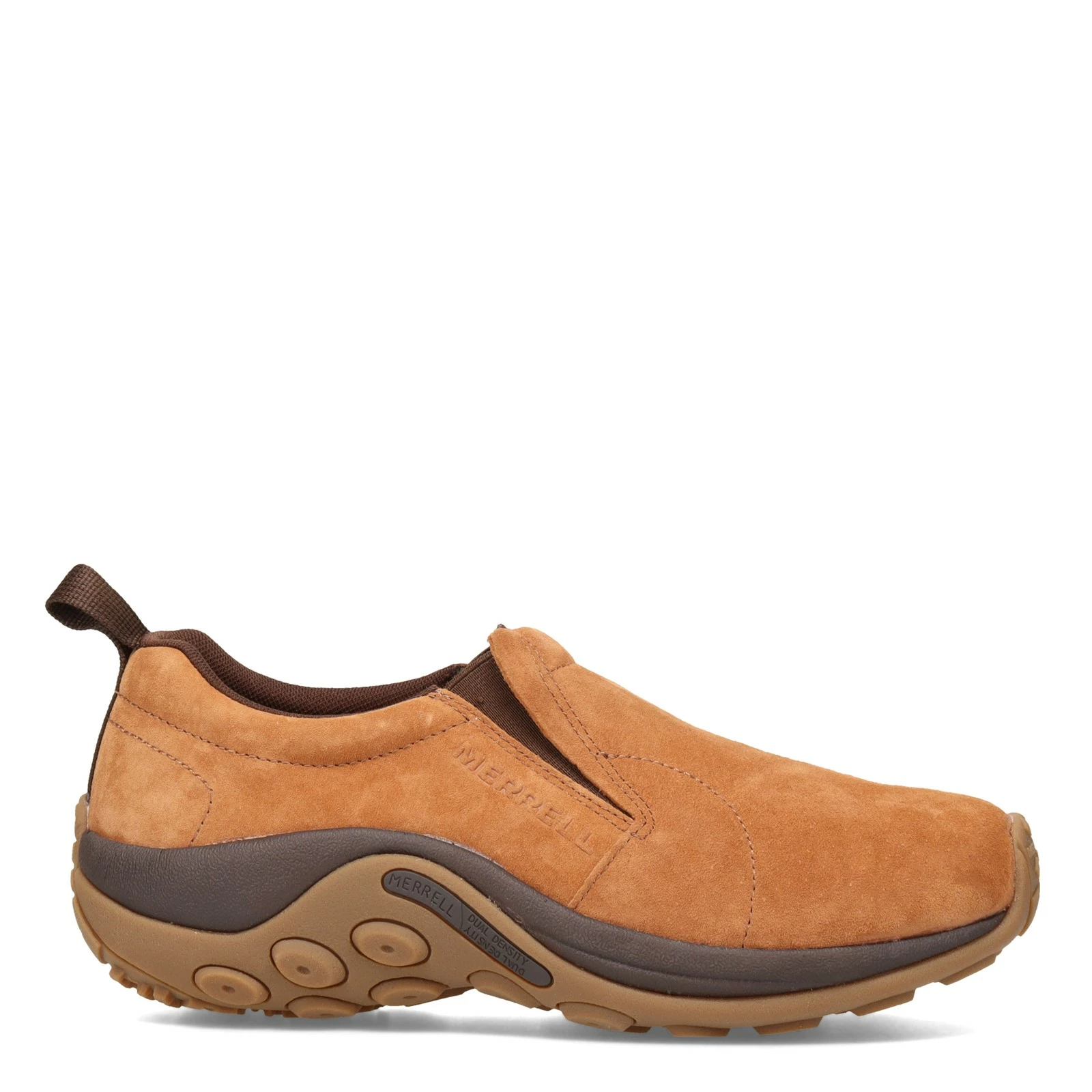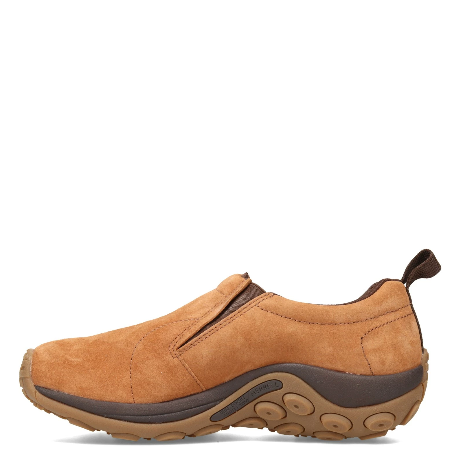 Men’s Merrell, Jungle Moc Slip-On. The Men’s Merrell Jungle Moc Slip-Ons are the original recovery shoe – a classic style, featuring a smooth suede upper and Merrell air cushion underfoot for extra support. This durable slip-on is your ultimate low maintenance shoe that can handle anything.