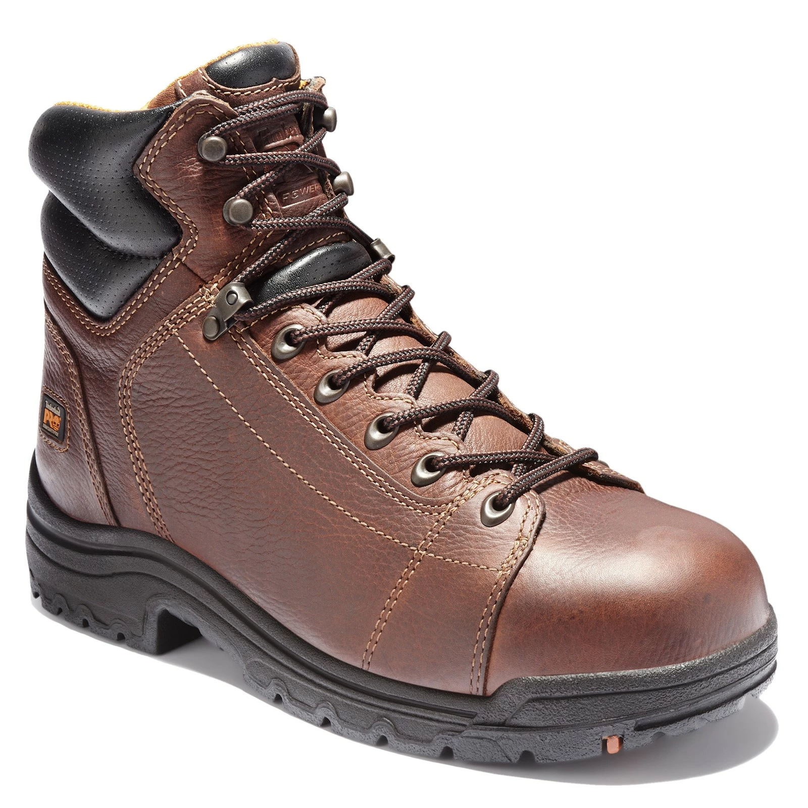 Men’s Timberland PRO, Titan 6in Alloy Safety Toe Boot. This is a classic TiTAN work boot – dependable, comfortable, and ready to protect and cushion your feet during long days on the job. These alloy-toe boots feature cement construction for flexibility, electrical hazard protection, a breathable footbed, and a lightweight, cushioning midsole.