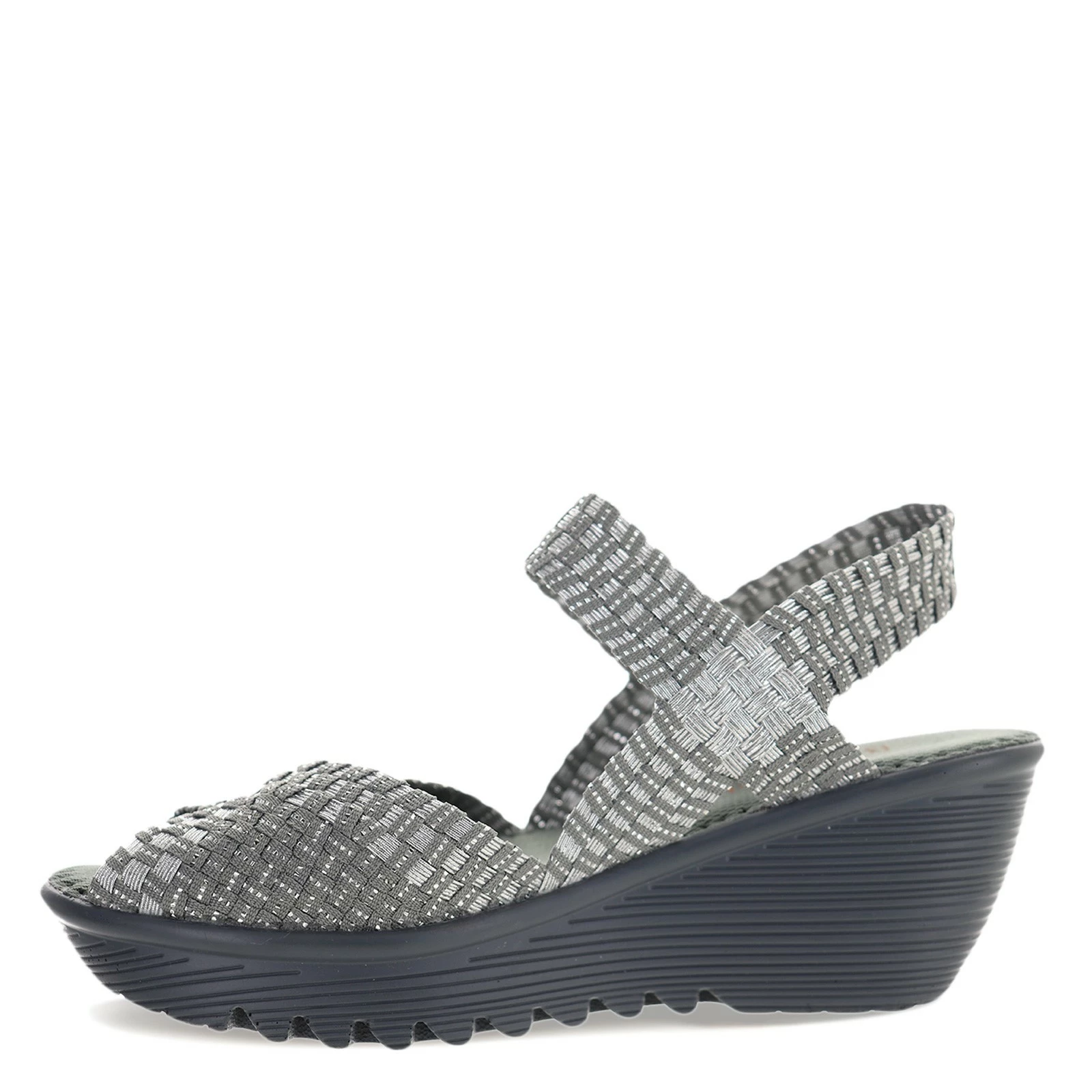 Women’s Bernie Mev, Fame Sandal. Step out in these sandals and you’ll look and feel like a million bucks! Featuring a woven elastic fabric upper, peep toe and slip-on styling for a great fit.