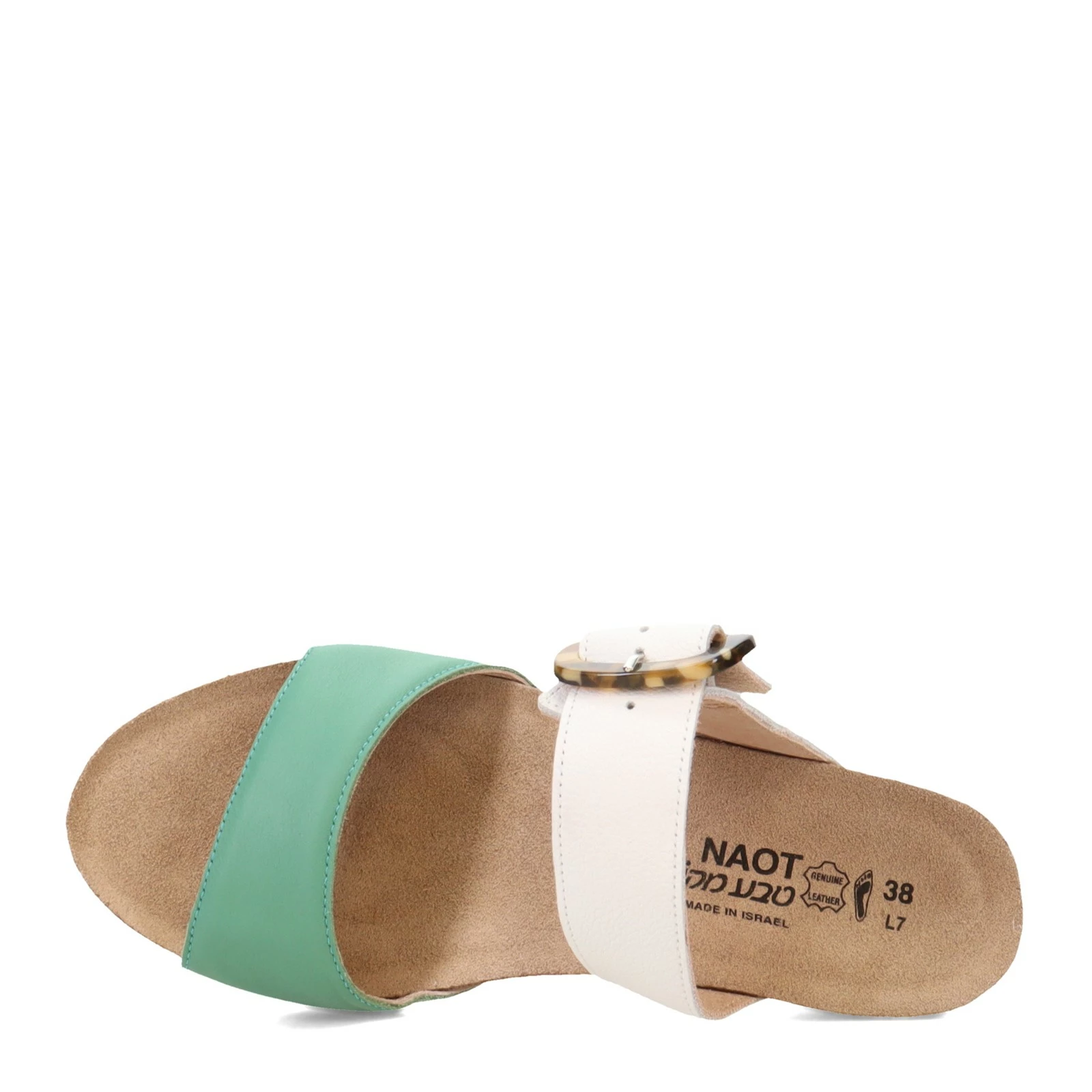 - Suede wrapped, anatomic cork and latex footbed molds to the shape of the foot