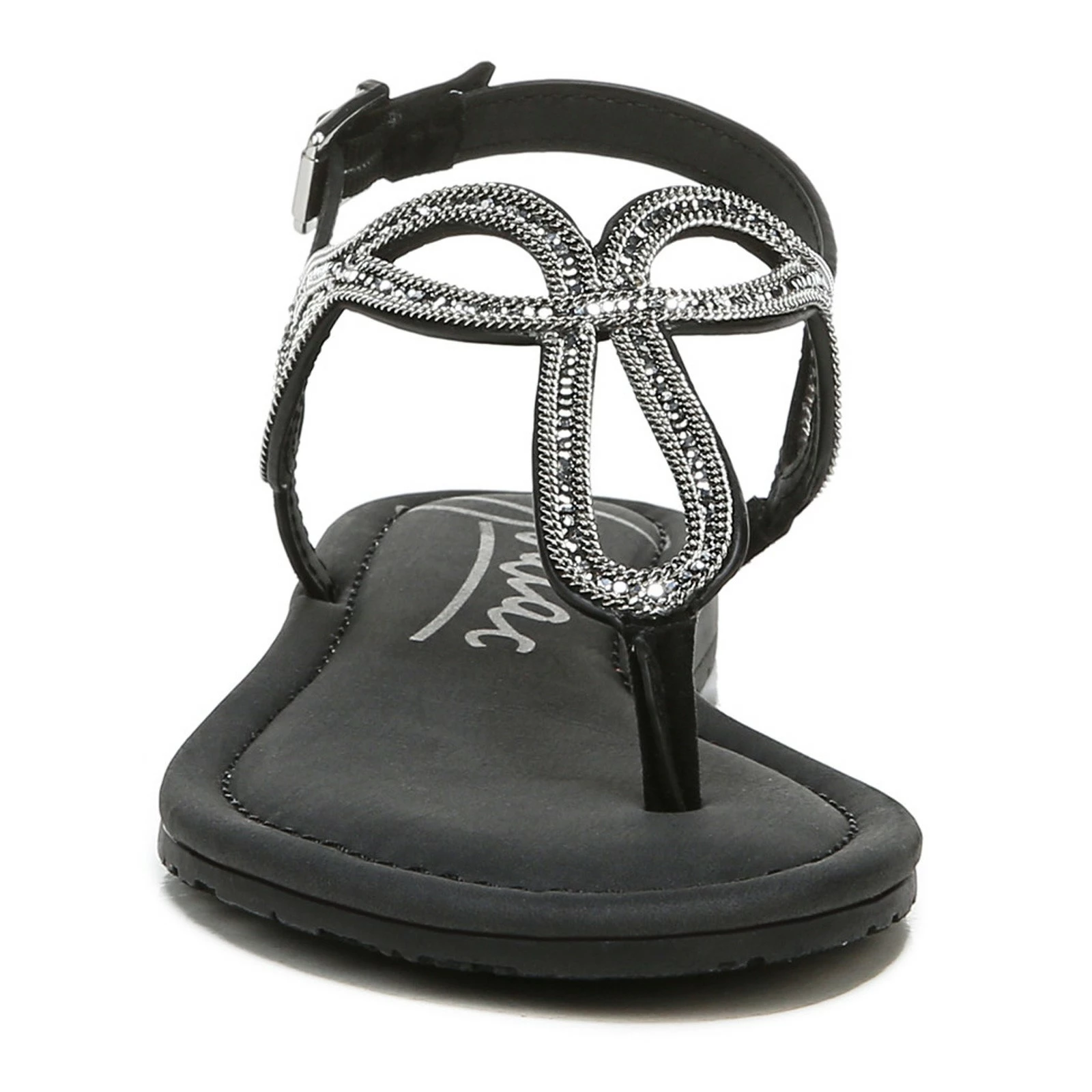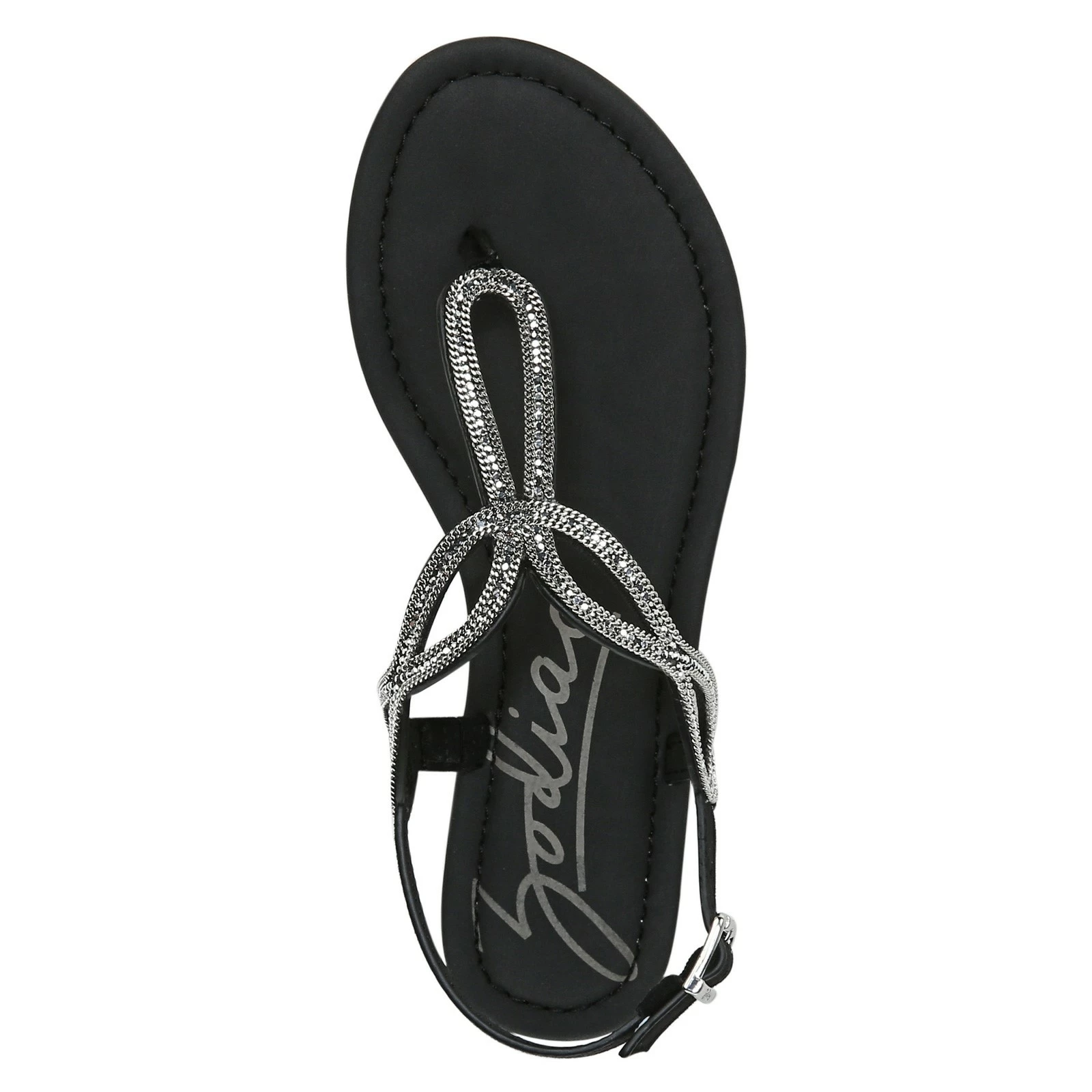 Women’s Zodiac, Yara Sandal. Hot summer days in the sun, cooler nights under the stars. Our Zodiac sandal has a barely-there thong silhouette, with artfully designed straps and rhinestone accents. Crafted from faux leather, it features super soft cushioning for all day comfort with every step. With a 1/2 inch heel, its perfect for everyday wear.